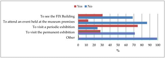 Most of the Instagram users reported that their visit at EMST was in order to visit a periodic exhibition or a permanent exhibition, or even to attend an event hosted at the museum premises, however, several also reported that the purpose of their visit was to see the FIX building housing the museum, from an architectural point of view (Figure 7).