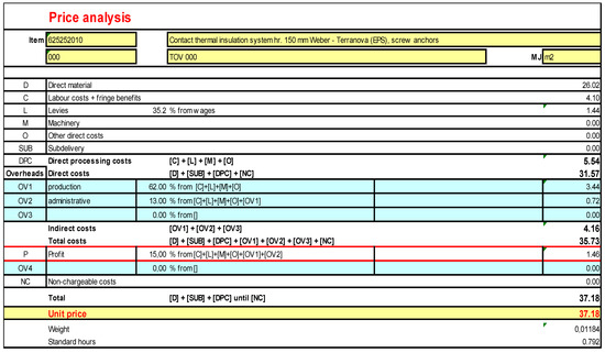 After analysing this situation and having consulted several times, the guide-makers of indicative prices in the guideline profit calculated from price level 2018. We took into account the price range profit of 14%–16% in the construction works of buildings and civil engineering works [8].