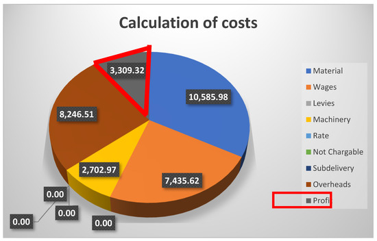 Figure 8. Displaying the calculation structure of the cost and amount of calculated profit on the contract [26]. - Using the used calculation formula in the calculation structure of the cost and profit 10.25% of the residual price of work in progress, amounting to EUR 3309.