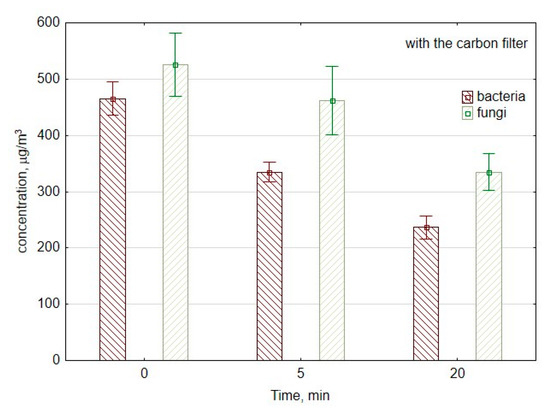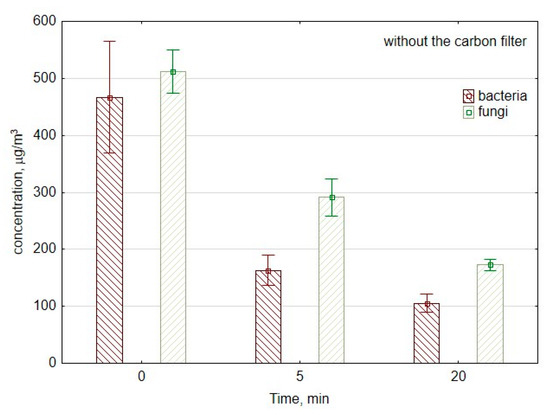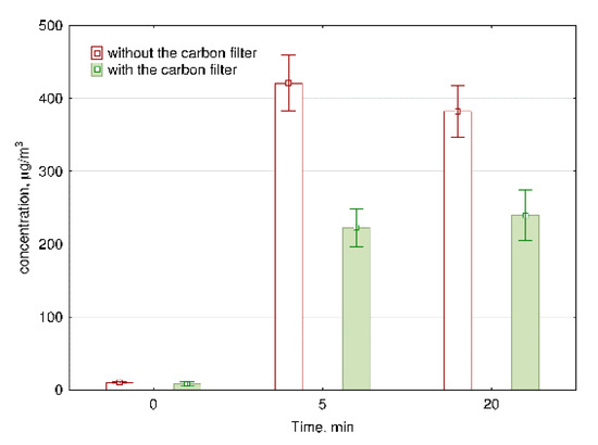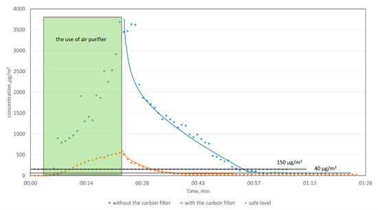 - in both cases (without or with carbon filter) the laboratory room was not ventilated,