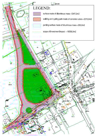 Numerous utilities in the form of gas, electricity, teletechnical and sewage networks are located within the road intersection and in its immediate vicinity the area is densely equipped. There are low green areas and local trees near the pavements and bicycle routes. The land was defined as low bearing, assigned to category G3 [].