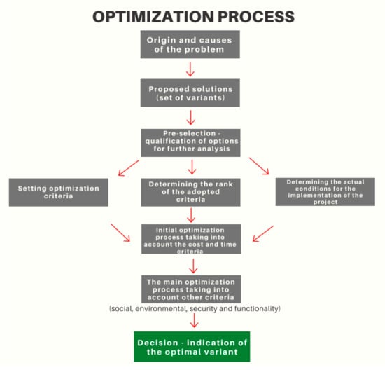 The criteria used by the authors to indicate the optimal solution were identified and analyzed during the interview with the contracting authority (the entity that will in practice finance and implement the selected scope of work). The criteria which are rational and justified from the point of view of practical actions that the contracting authority will undertake were analyzed.