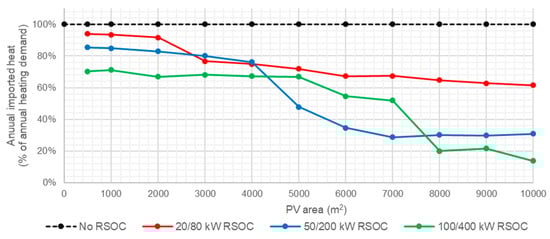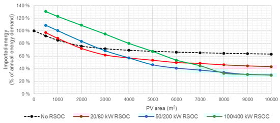The optimal operation of three RSOCHS systems with different RSOC sizes is generated for different solar PV areas and hydrogen storage capacities. The RSOC sizes used for the RSOCHS systems are 20/80 kW (20 kW maximum power output in SOFC mode and 80 kW maximum power input in SOEC mode), 50/200 kW and 100/400 kW. All tested case parameters are presented in