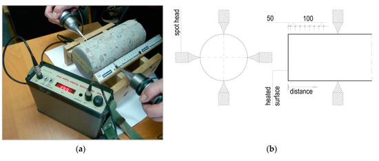 - Stawiski, B. Ultradźwiękowe Badania Betonów i Zapraw Głowicami Punktowymi; Oficyna Wydawnicza Politechniki Wrocławskiej: Wrocław, Poland, 2009. [Google Scholar]