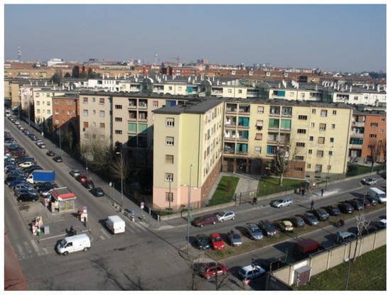 Public housing neighborhoods are important parts of a city. They represent a series of contradictions, related to the high human and social value as well as to their abandon, low-cost alienation, architectonic and social degradation, sub-letting, rack-renting, failed regeneration, or gentrification attempt [,]. In Italy, the problem is huge. There are approximately 1 million of public housing neighborhoods (954.161) [] that represent 4% of Italian homes, in a country with a higher European (hereafter, EU) share of private houses (75–80%) []. Seventy percent of this patrimony is still owned and managed by specific public associations (i.e., the Istituto Autonomo Case Popolari–IACP) or public authorities (i.e., provinces, municipalities) []. The first public housing neighborhoods were built between the two world wars in the northern part of Italy to satisfy the needs of the farming population from the surrounding countryside or abroad [,]. The working class (also called “the workers”) migrated to be employed in the “new factories” of the biggest cities (e.g., Milan, Turin). Similarly, some cheap affordable housings were built after the second world war, to conceive the needs of the immigrants from southern Italy, attracted by the massive industrial expansion of the north. In general, these districts were located in a peripheral part of the city. They expressed the architectonic, typological, and technologic style of this period, as the most famous experiences of Vienna and Amsterdam (e.g., Karl Marx Hofe in Vienna, Spaarndammerbuurt and Amsterdam Sud in Amsterdam) [,]. These peripheral but “proudly workers” areas contributed to the innovation of the Italian cities []. In the past (1963–1998), their construction and care were guaranteed by a dedicated national fund provided by the GesCAL association (Gestione Case per i Lavoratori). This fund was abolished after its closure in 1998 []. This creates “slums” with decay, lack of maintenance, destitution, and thieves. In the last decades, these districts suffered a strong physical and social transformation, with a widespread impoverishment due to the lack of funding and maintenance []. The neighborhood of public housings acquired a negative meaning, as homes for those who cannot afford a mortgage []. Actually, they are frequently subject to criminal activity, social disorders, internal conflicts, drug-taking, racketeering, dealing, vandalism, and military intervention for the illegally occupied home [,]. Social problems refer also to poor management, racial segregation and exclusion, and stigmatization [].