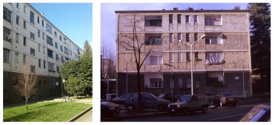 Many EU countries are implementing actions for redeveloping the public housing districts, paying attention also to energy efficiency and environmental sustainability to overcome the issues of land consumption savings. In Italy, some planning actions have been realized departing from 1980 for satisfying the needs of public housing revamping []. Examples are the “Piano di Riqualificazione Urbanistica” (PRU, Programs of Urban Renewal), the “Progetti Pilota Urbani” (PPU, Urban Pilot Projects), “Programmi di Recupero Urbano e Sviluppo Sostenibile del Territorio” (PRUSST, Urban Regeneration Programs and Sustainable Development Planning), and the “Contratti di Quartiere” (Quarter Contracts). The last one started in 2001 for activating new design solutions to improve the energy and environmental quality of public homes [,,,,]. These interventions were based on the involvement of the inhabitants for defining new design strategies and for programing a long-time sustainability []. Despite the high expectations, this experience was just an opportunity to carry out standard maintenance actions []. Similarly, the French “Contrat de Ville” applied several integrated policies for urban planning, energy retrofit, economic development, and social support for damaged public neighborhoods [].