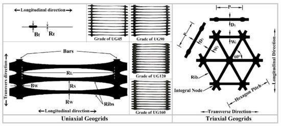 Table 4. Properties of the triaxial geogrids by the manufacturer, experimental tests, and numerical analysis.