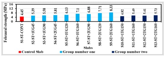 The post-peak flexural strength of the concrete slabs ( σ ,   in   MPa ) was calculated using the following Equation (1);