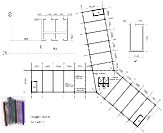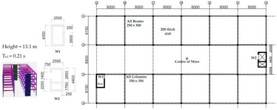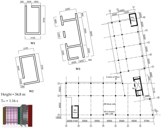 Reinforced concrete multi-storey buildings make up the bulk of the building stock in the world. These buildings are typically braced laterally by cantilever shear walls or core walls, which are asymmetrically disposed around the building resulting in a significant offset of the centre of rigidity (CR) from the centre of mass (CM) of the building. The offset, which is also known as the eccentricity, can result in significant displacement amplification of the building in seismic conditions, thereby increasing the vulnerability of the building to sustaining severe damage [1,2,3,4]. The displacement demand of the building is always most critical at its edges. Parameters that are particularly relevant to the seismic response behaviour are namely the elastic radius, eccentricity, radius of gyration of its mass, the natural period of vibration, and disposition of the structural elements that are close to the edges [4,5,6,7].