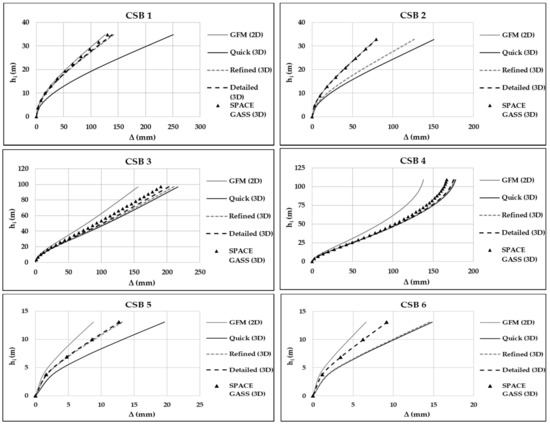 In the foregoing illustrations, the displacements of a multi-storey building were represented by single (effective) displacement values, namely Δ2D, Δmax, and Δmin. The relationships for obtaining these parameters for given floor displacements are defined by Equations (4)–(6).