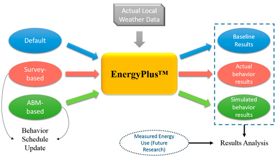 21]. In addition, an on–site survey is conducted to collect actual behavioral records of selected building occupants, as another source of input for the BEM. Finally, a simulation experiment with three scenarios is conducted to compare the building energy simulation results within the behavior data collection period. The proposed research method can also be expanded to other behaviors or building types. A preliminary study of the authors [