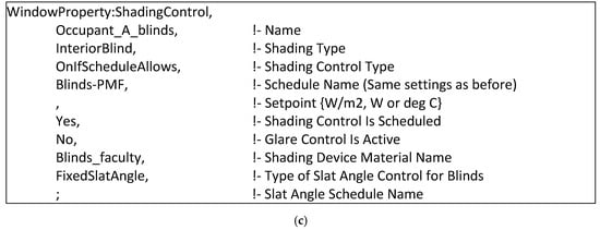 Figure 6c, the object was applied in the field of “Shading Control Name” in “FenestrationSurface:Detailed” at the corresponding room location.