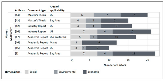 - Environmental sustainability—the frequency of these factors was low in both the literatures that were focused on American multifamily housing (38%) and housing construction (43%), but significant in general building construction literature (62%).