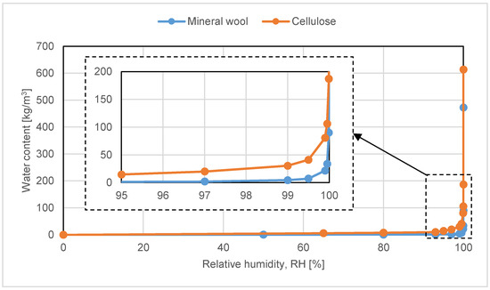 11]. One of the reasons is that thermal insulation of cellulose can contain more moisture than mineral wool, see