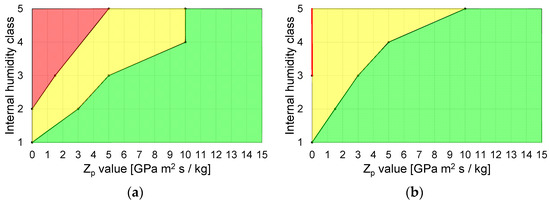 2 s/kg; thus, a structure rarely exists without any water vapour diffusion resistance of the interior cladding. With increasing internal humidity class, a larger vapour pressure is present, which will increase the moisture transport through the wall. Therefore, the requirements for the internal materials increase with regard to the water vapour diffusion resistance of the cladding to control the vapour diffusion into the building envelope.
