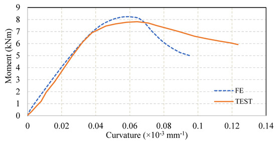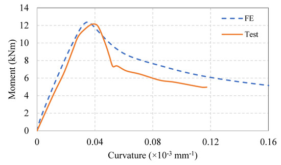 Comparison of experimental [47] and FE moment–curvature curves for cold-formed steel built-up open section OT1.2-136-S150.