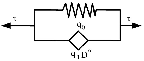 where denotes the modulus of the spring element, and denotes the damping of fractional dashpot; is the shear strain, and is the shear stress; is the fractional order derivative, and . Applying the Fourier transform to Equation (6), we can obtain that