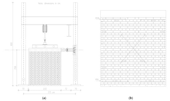Masonry wall test set-up: (a) structural model; (b) layout of LVDTs.