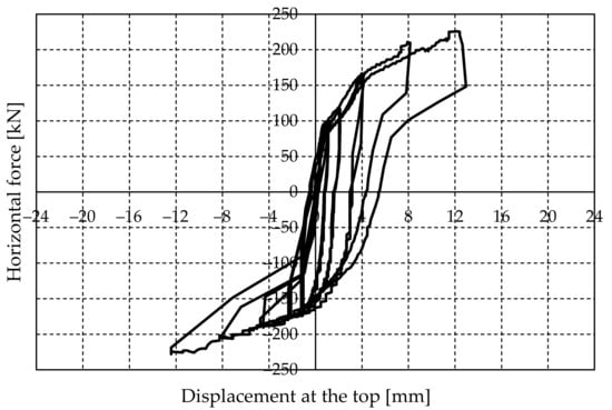 If a wall is exposed to cyclic horizontal force, due to the occurrence of damage, there is also a decrease in load-bearing capacity under repeated loading. The consequence of load-bearing degradation is that, for the same displacement, the wall has less resistance to cyclic loads than to monotonic ones.