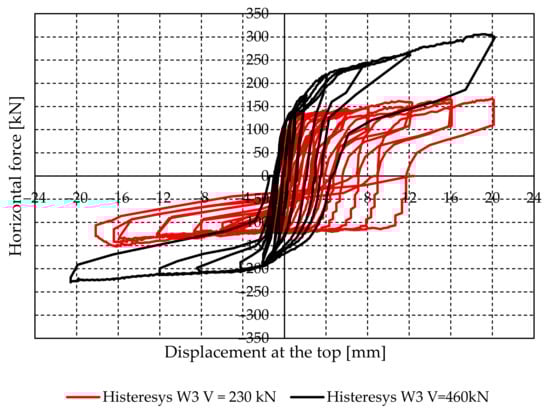 Force—displacement diagram for W3 (V = 460 kN, σv = 0.8 N/mm2).