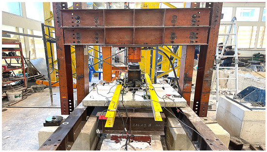 All specimens were designed to be shear controlled. All specimens were provided with sufficient, and similar flexural reinforcement ratio (0.009) to have higher flexural strength than corresponding shear strengths. Typical layout of flexural reinforcement in each specimen is shown in Figure 3. ACI 318-19 [18] provisions were used to calculate the shear and flexural strengths of specimens. Shear strength provided by concrete is calculated using Equation (1).