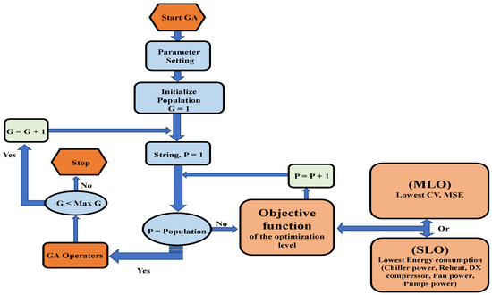 The second level of optimization utilizes the whole system-level optimization technique. Thus, the process will include integrating the first level of optimization (MLO) and the second level of optimization, a whole system performance optimization (SLO). The proposed optimization technique will reduce the systems’ energy consumption while improving the thermal comfort levels of the zones. The optimization tool that was selected to achieve this goal is the genetic algorithm (G.A.). Figure 1 below shows a schematic for the proposed integrated whole system model optimization process.