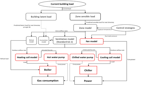 - An HVAC simulation model to calculate the total power. This model will read the user inputs such as the system loads, outside air conditions, design system parameters such as efficiencies and pressure drop, schedule, and electricity demand signal.