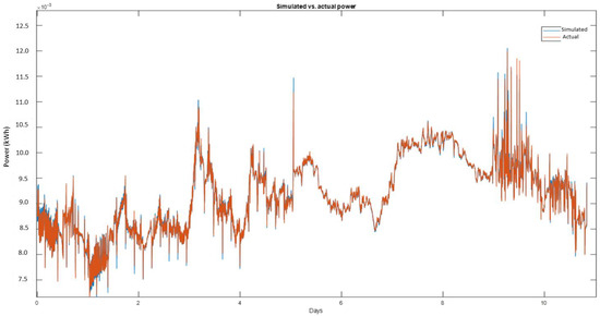 Optimal results with simulated power vs. actual power for the testing period of 10 days.