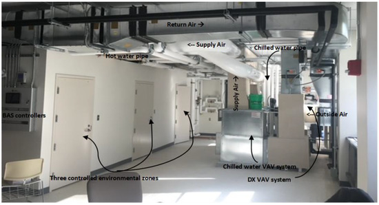 The lab was equipped with several full-scale multi-zone HVAC systems, such as the chilled water VAV system and chilled water central plant and hot water central plant produce chilled and hot water to terminal units. In addition, the lab was equipped with a BAS system where actual performance data can be collected and organized then transferred into data sheets to prepare for the modeling testing and training. Figure 5 shows the BEAST lab layout.