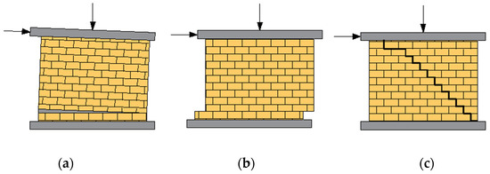 Three types of mechanisms and failure modes of unreinforced masonry walls were detected once exposed to in-plane loads (Figure 1):
