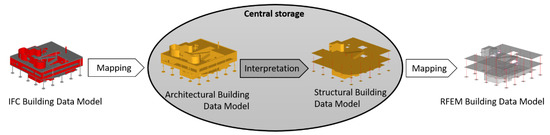 Data exchange implies restructuring and translating data in a source schema in one application to a target schema in another application [11]. The level of achievement of a seamless data exchange varies between professional domains. Interoperability is “the ability of two or more systems or components to exchange information and to use the information that has been exchanged” [2]. Numerous software tools belonging to different professional domains have also differing internal structures, which hinders the full interoperability across software tools [12]. However, the stakeholders belonging to various domains still aim to exchange information of interest. One of the greatest challenges is the transfer of a building model between architectural design and structural analysis [13]. The experts exchanging information of interest need to have mutual understanding of each other’s domains in order to facilitate the communication [14]. The collaboration during the developed design stage (i.e., Einreichsplan in Austria) is particularly interesting, since both the architectural design plans and structural analysis are required for the building permit [15]. Software tools in both domains allow for the use of building models; however, the model-based data exchange is still burdened with problems [6].