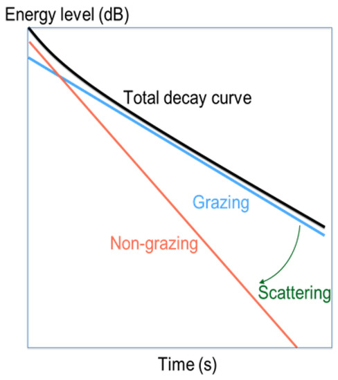 The total decay in a room is the sum of the energy in the grazing and the non-grazing sound fields [40].
