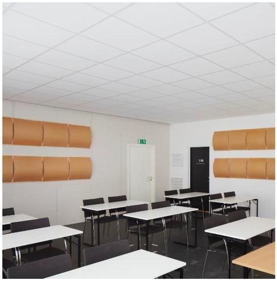 To adjust the above-mentioned acoustic parameters and create a satisfactory sound environment for the performance of cognitive skills, different types of acoustic treatments can be used. At present, it is typical for ordinary rooms to use porous absorbers. The placement of such treatment is important as regards the effect on different room acoustical parameters [19,20]. Furthermore, the absorption coefficients are also angle dependent, and methods have been developed to take this into account on a laboratory scale [21]. Nolan et al. worked on a measurement method for in situ measurement of angle-dependent absorption [22,23].
