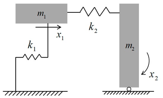 Beams, columns, walls, and other components in the frame structure contribute to the energy dissipation, inertial, and elastic properties of the structure. After the controlled mode of the structure is determined, the frame structure can be simplified into an SDOF structure and each of the above properties is respectively concentrated in the damping, mass, and stiffness components. Hinged at the base, the rocking wall is connected with the SDOF structure by a link with a certain stiffness. Unconsidering the damping, the controlled system in Figure 2 consists of a mass block, springs, and a hinged rocking wall.