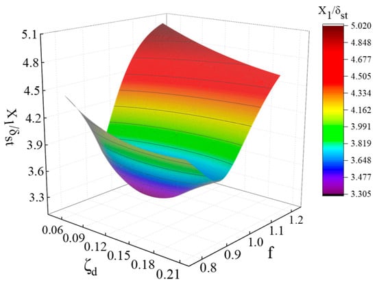 Using the above parameters, we can rewrite Equation (5) to obtain the dynamic amplification factor of the main mass.