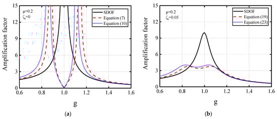 Using the symbols above and Equations (16)–(18), the amplification factor of the main mass is given as