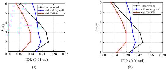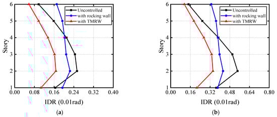 Comparison of the IDRs under El Centro excitation: (a) 0.1 g case; (b) 0.2 g case.