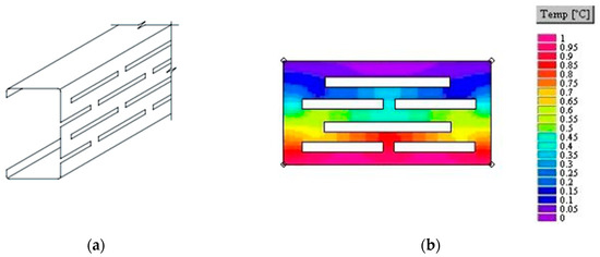 Staggered slotted perforated steel section (a) C section with slotted web (b) Temperature distribution through perforated web section [24].