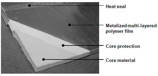 VIP wrapped in a heat-sealed metalised multi-layered polymer film [25].