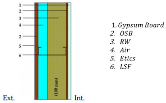 Mineral wool is the most common thermal insulation material used in LSF construction, and it is often placed between steel studs. Mineral wool is commonly utilised on the structure’s external walls and slab elements, but it is also employed within inner partitions and floors. It offers additional fire resistance to LSF elements since it is an incombustible material [26]. The use of expanded polystyrene with an External Thermal Insulation Composite System (ETICS) is a standard construction practice for thermal insulation. As the exterior thermal insulation layer can be continuous, ETICS can help minimise thermal bridges in steel studs [8,27].
