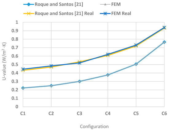 U-value results obtained by FE model and reported in Roque and Santos [21].