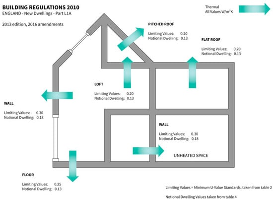 England Building Thermal Regulation (U-values) for building elements (walls, floors and roofs) [37].