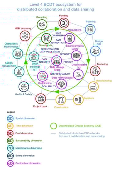 When BCT reaches sufficient maturity and scalability to offer fully decentralized systems for the whole IT infrastructure, a new level of maturity would need to be considered (e.g., BIM Level 4) for BCDTs. This paper hypothetically names it Maturity Level 4 for BCDTs.
