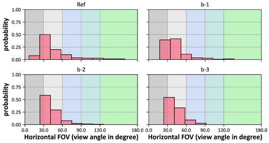- almost blocked to poor views correspond to less than 30° view angles for overall horizontal FOVs or vertical FOVs, i.e., less than ±15° view angles in each direction,