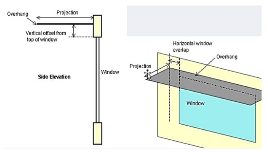Details of the overhang shading device [36]. Reproduced with permission from DesignBuilder Software Ltd., (Gloucestershire, UK).