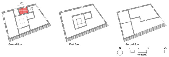 Plan view of the floors of the studied building in Campo de Criptana (Ciudad Real, Spain), indicating the monitored room with a red hatching.