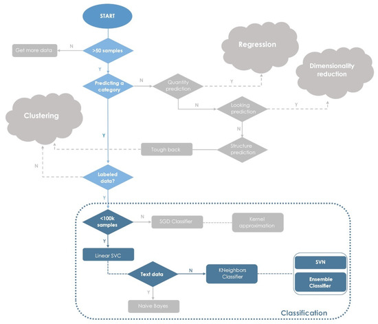 - Scikit-Learn Flowchart for Choosing the Right Algorithm. Available online: https://scikit-learn.org/stable/tutorial/machine_learning_map/index.html (accessed on 3 December 2021).