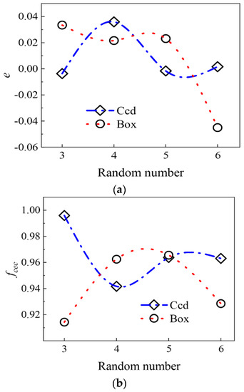 Figure 4b shows that the effective accuracy range of the CCD collocation method is [0.9417–0.996]. Another method, Box collocation, the accuracy range is [0.9285–0.9656]. The upper and lower limits of the accuracy range when using the CCD collocation method are higher than that of the Box collocation method.