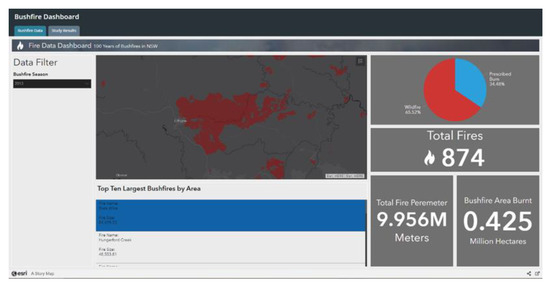 GIS have the potential to bring together different data and information, whether static or not, and turn into insights that serve as intelligence for emergencies and catastrophic events. These insights can then be shared with other emergency agencies or can be published publicly. GIS have the ability to aggregate and visualise multiple datasets, and therefore have a great potential for responding to disasters and extreme weather events, including bushfires, while dashboards are platforms that provide key insights for at-a-glance decision-making [41].