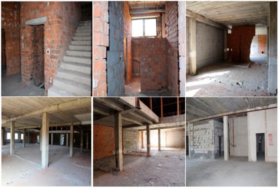 During the building visits, photo documentation (Figure 6) was taken and measurements of the building were processed. As hazardous materials are not expected to be present, sampling and analysis of the hazardous substance in materials were irrelevant [38].